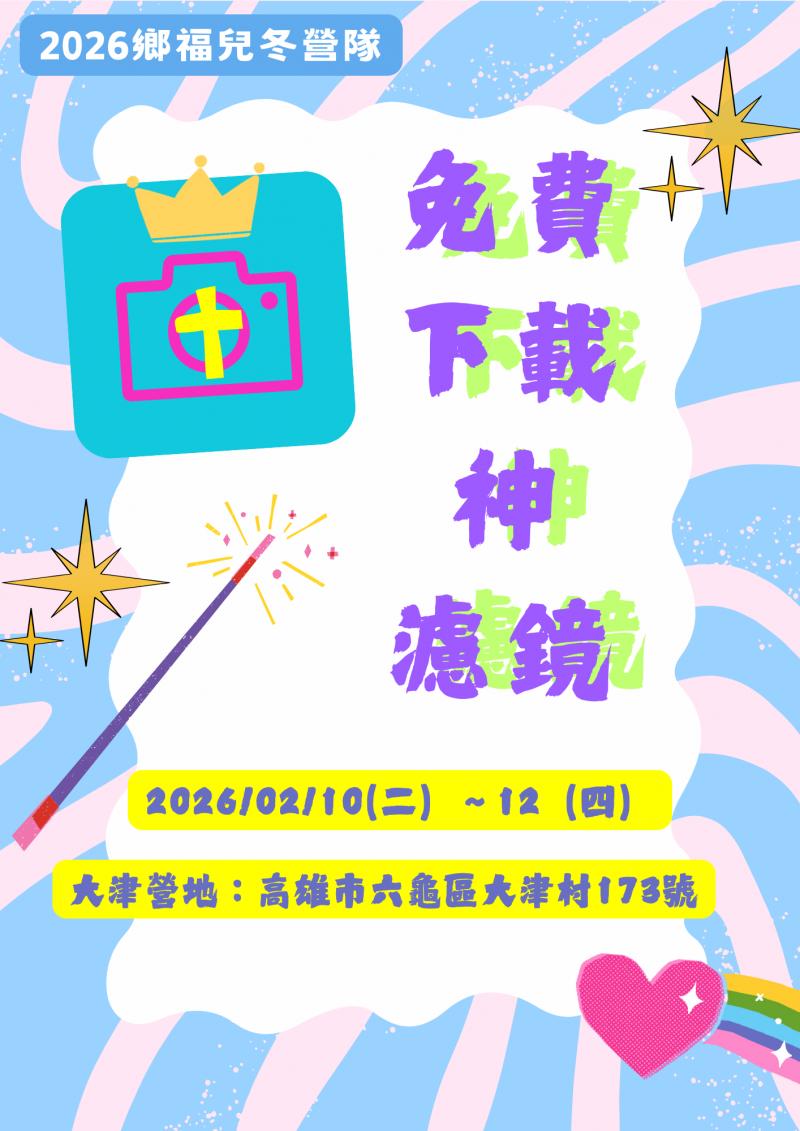 三天營隊讓我們一起「開啟神濾鏡」!我們將和《聖經》裡的撒該、婦人以及大兒子一起遇見耶穌,學習用神的眼光認識自己。耶穌是好牧人,引導每個小羊明白,我們很寶貴也值得被愛。